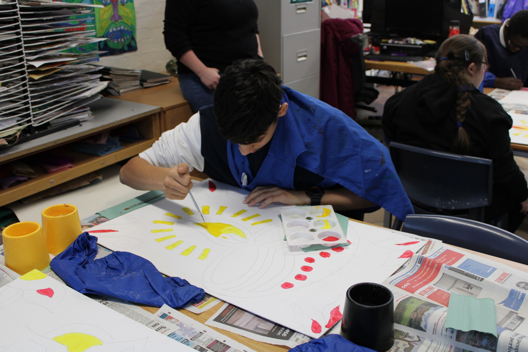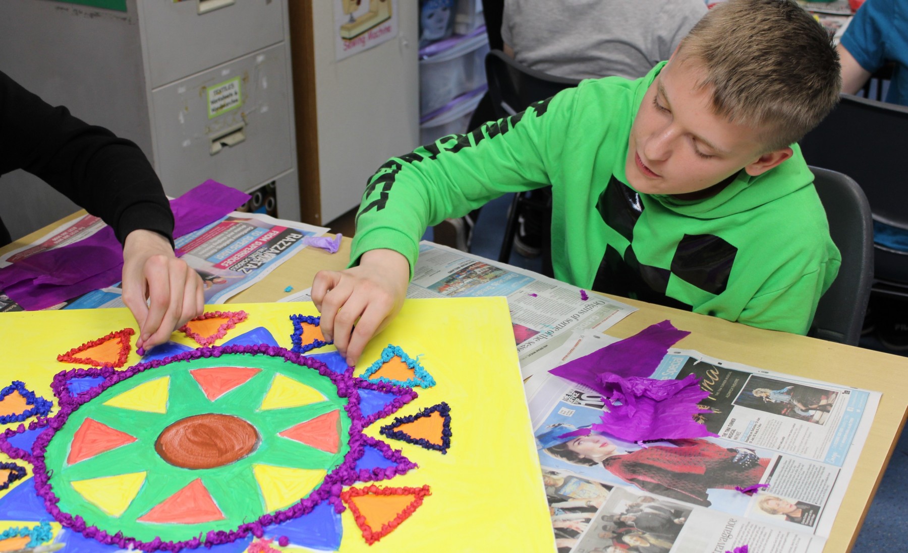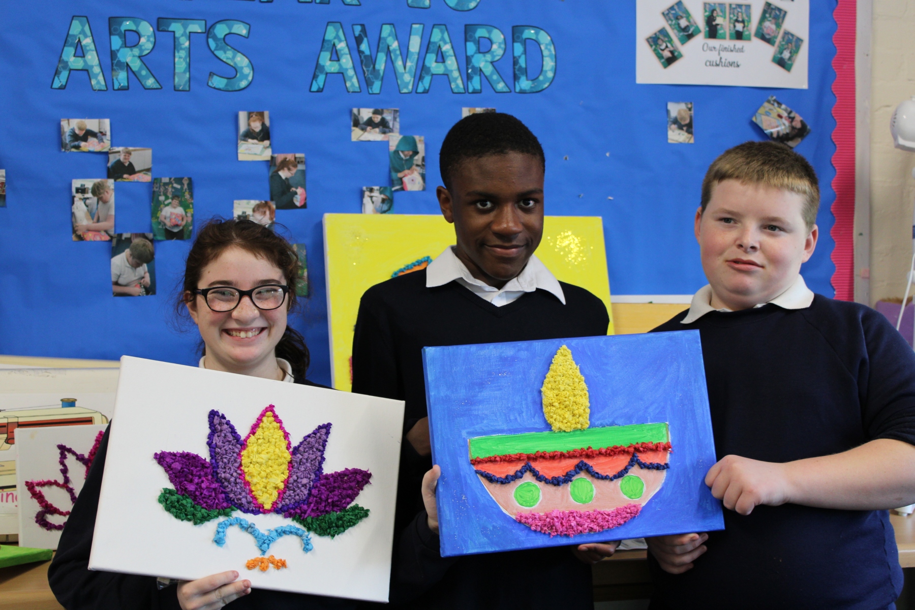 On Friday 19th October Queensbury School celebrated Diwali. Students created a range of beautiful art works including mixed media collage, acrylic canvas painting, clay tea lights, wire and tissue painting lanterns and Rangoli chalk art. Students had the option to have their hands decorated with Henna and samosas were on sale at break. I would like to say thank you to Local Councillor Mick Brown for coming here today to our assembly and awarding our pupils for their hard work.
