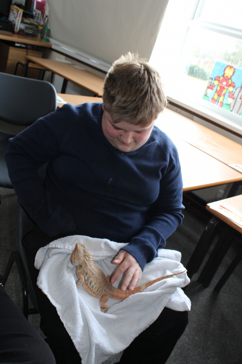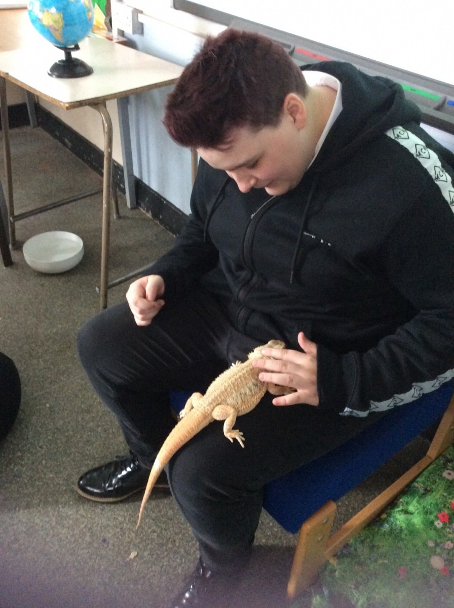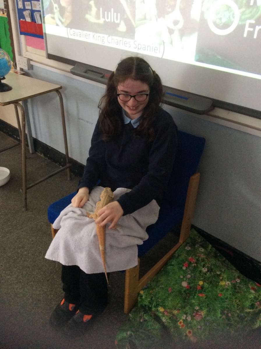 Queensbury celebrated British Science Week (9th March-13th March) with having a day of animal interactions. All students that participated showed a great interest and asked some scientific questions about the animals. Most students and some staff were lucky enough to hold a bearded dragon (Spike) for the first time and some students challenged themselves and their fears by interacting with a Cavalier King Charles Spaniel (Lulu – dog). We also had an Amazonian White Milk Tree Frog that the students could observe and ask questions about. Overall it was a very enjoyable and successful animal interaction day.