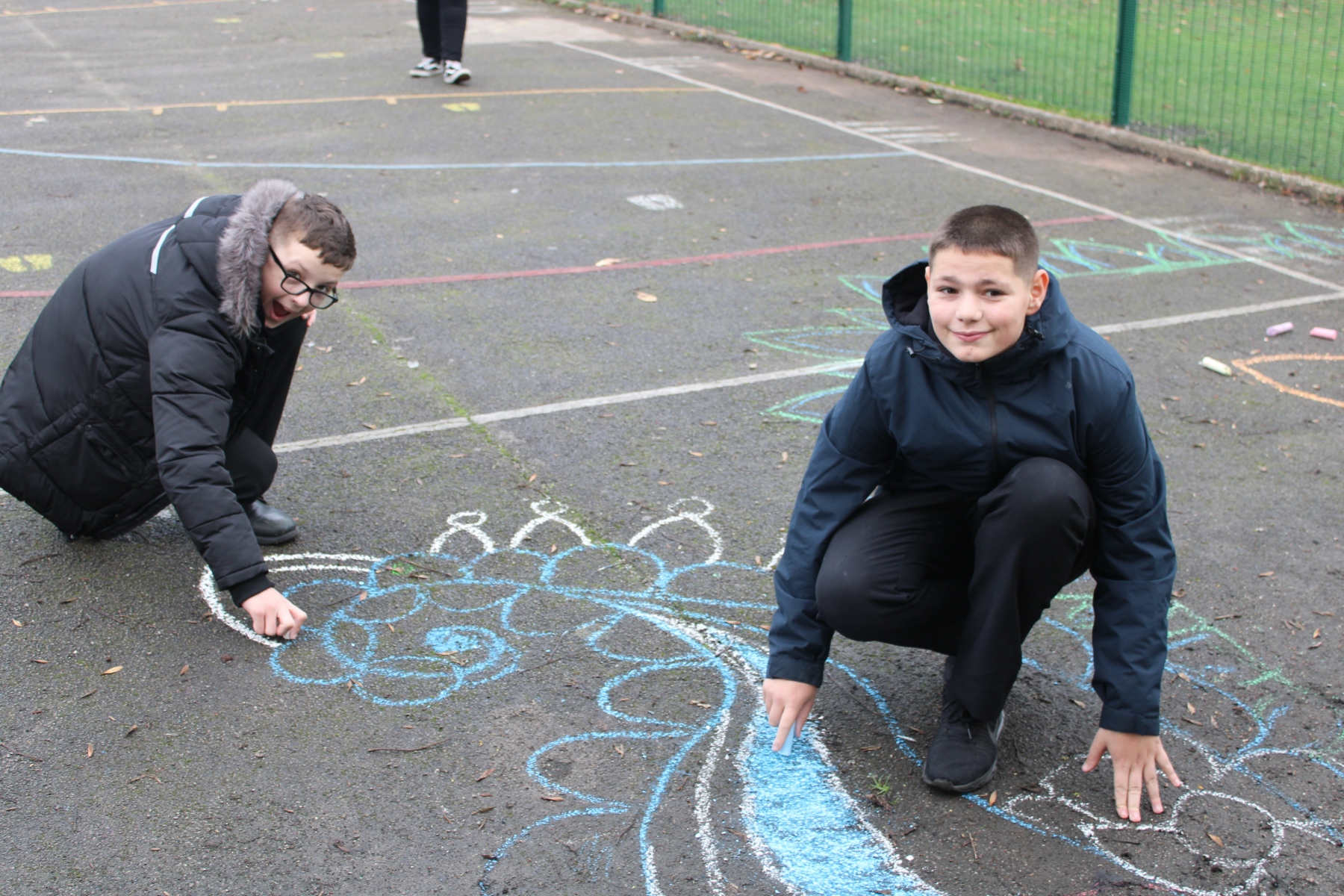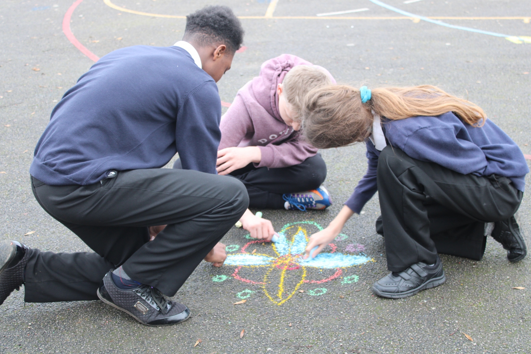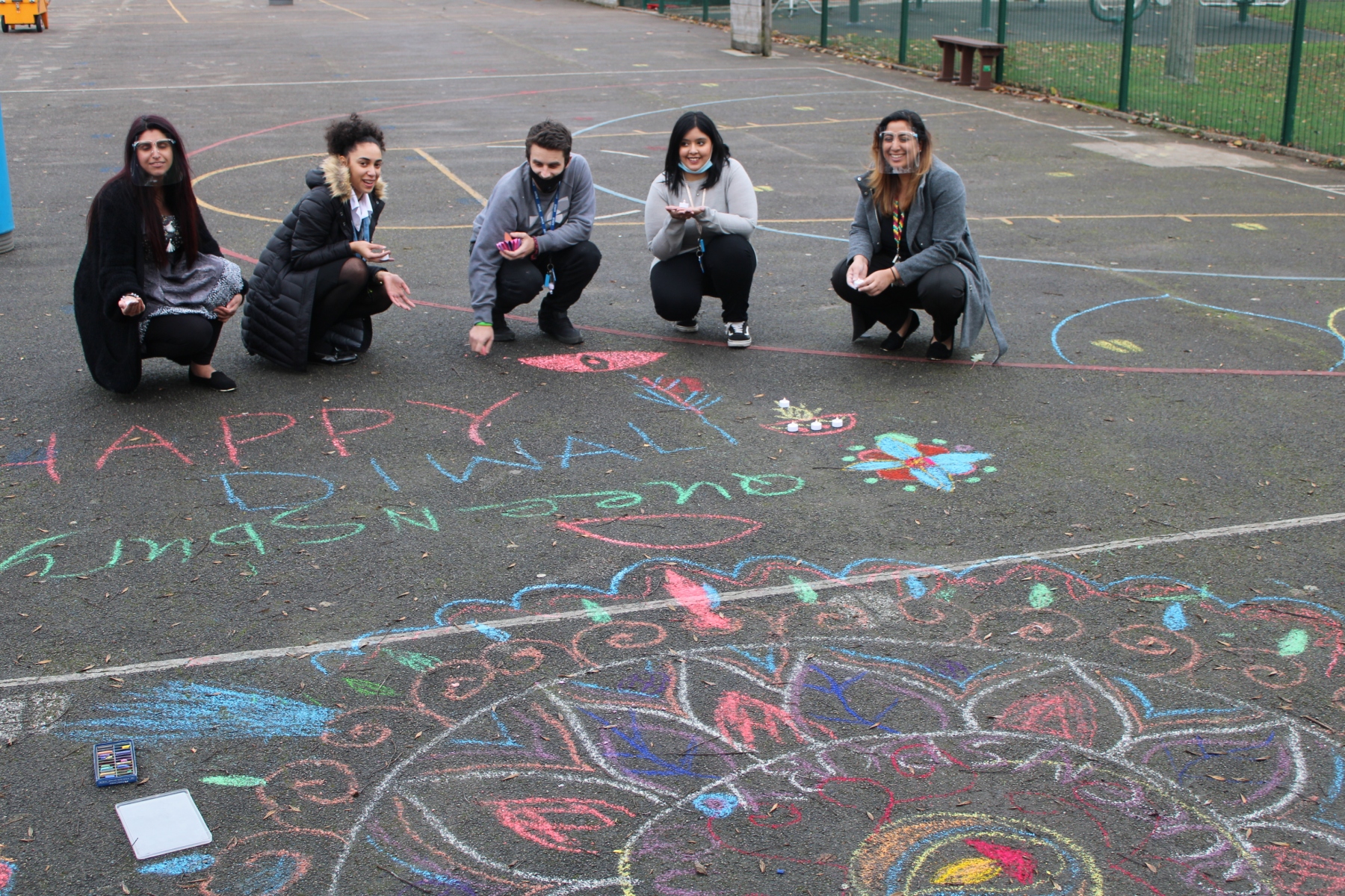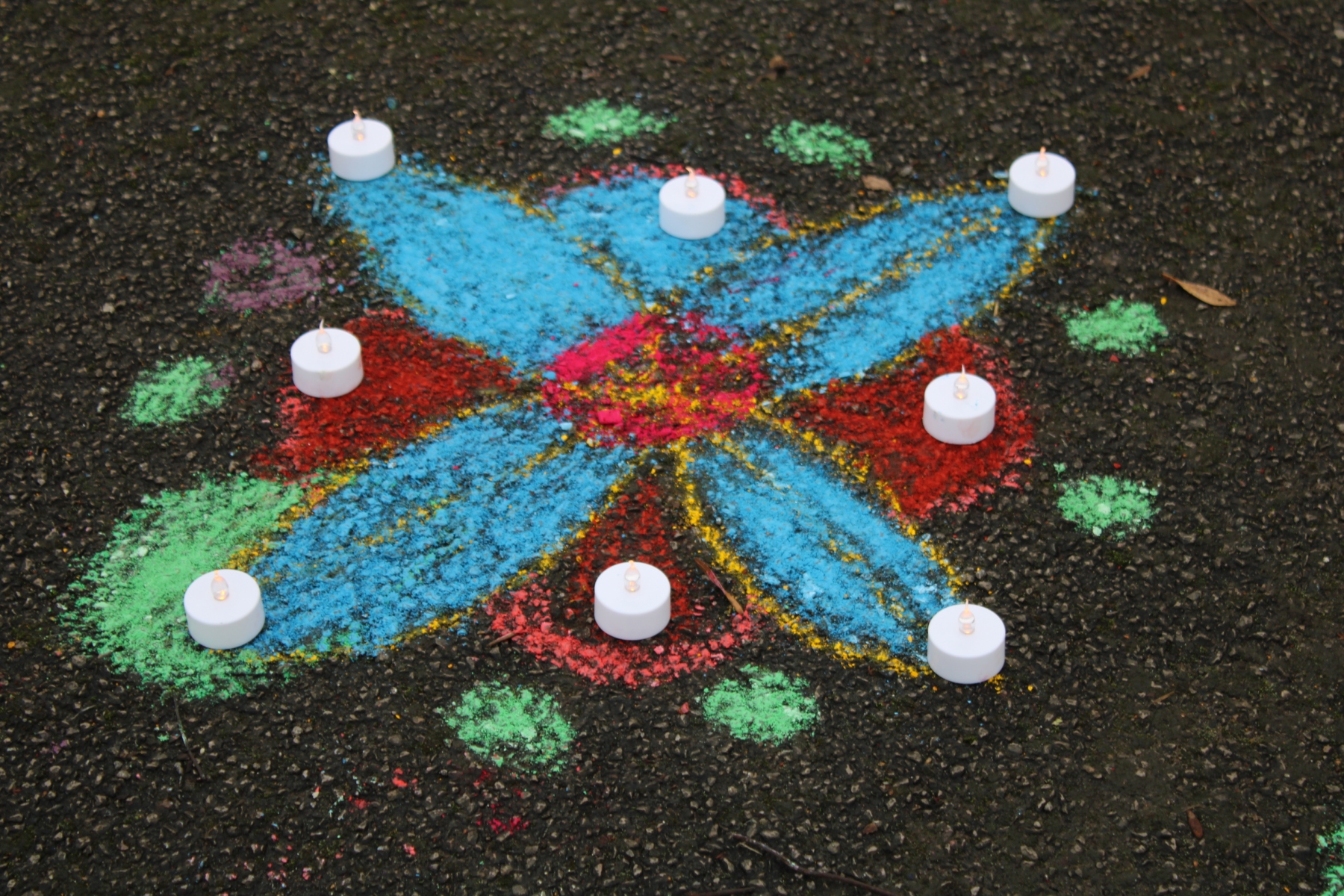 Diwali Celebrations 2020 November 13, 2020 Queensbury celebrated Diwali in true fashion by creating some fantastic Diva designs/and Rangoli chalk patterns in the playground. A massive thanks to all staff that have supported to mark this wonderful occasion.