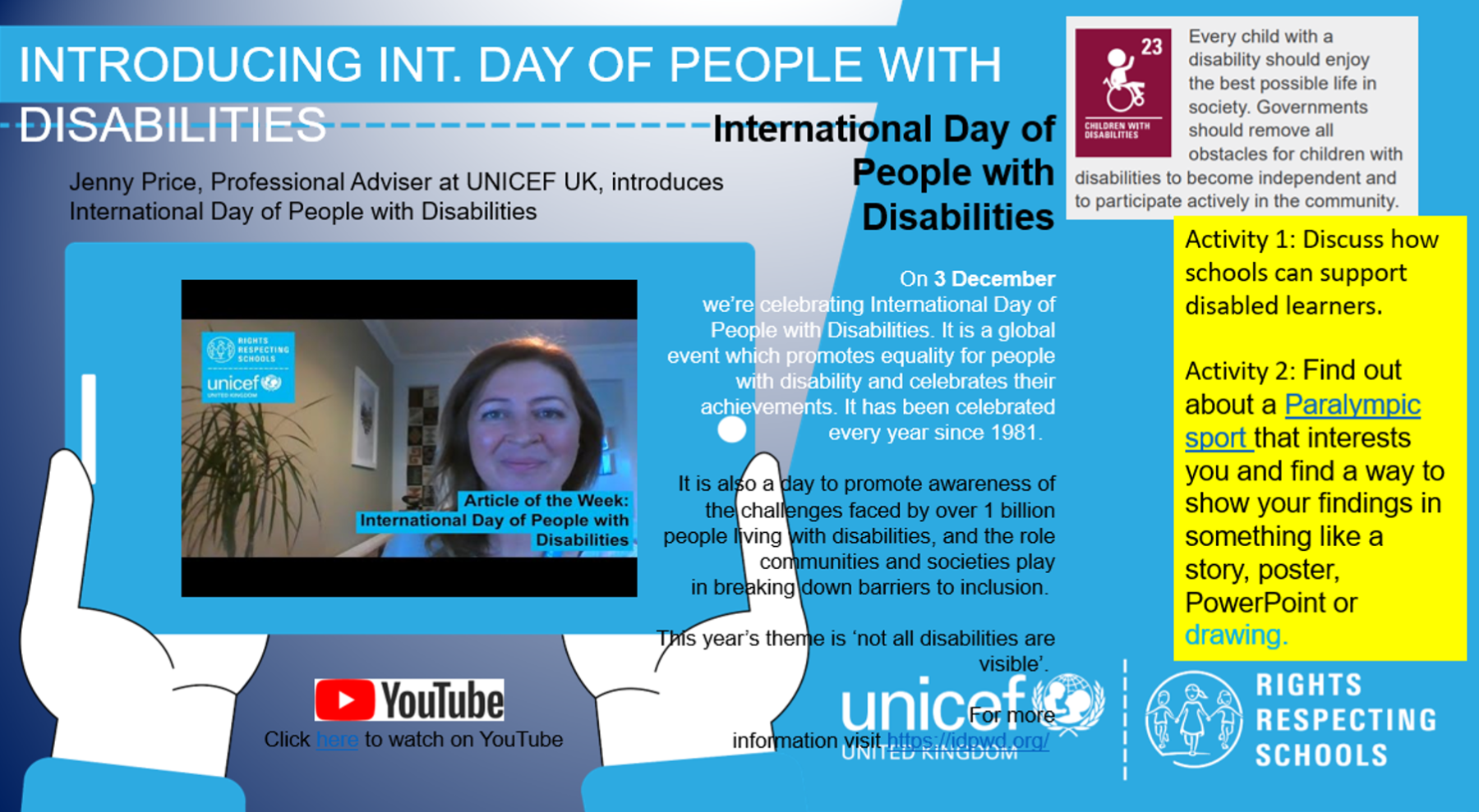 Rights Respecting Schools: Article 23 March 23, 2022 International Day of People with Disabilities For more information visit https://idpwd.org/