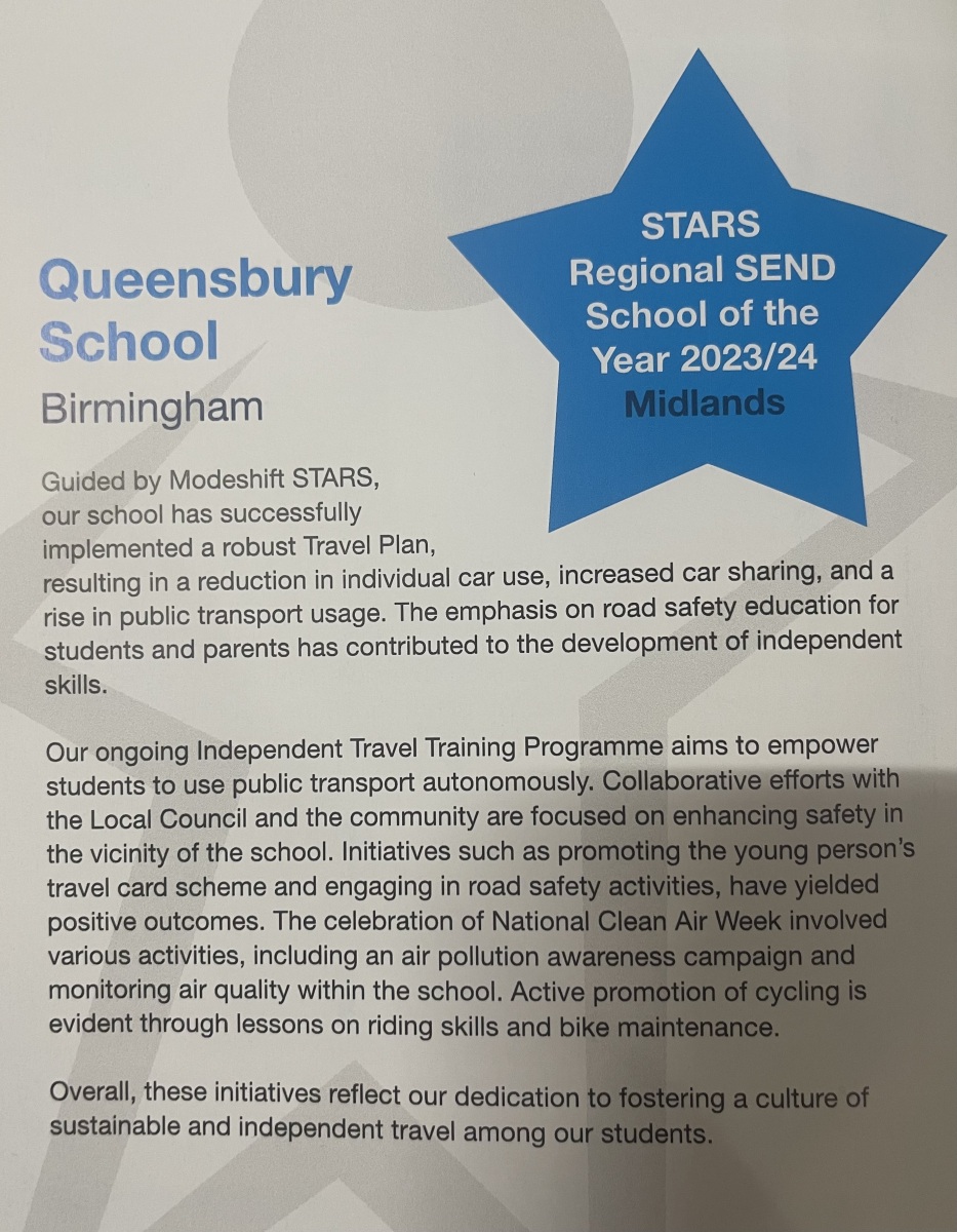 Special thanks to all the staff that have been involved not just this year but over previous years with Bikeability and increasing independence. One final special thanks needs to go to Liz Richards who has firmly pushed the agenda, networked and driven the school forwards with its travel plans and independent travel training.