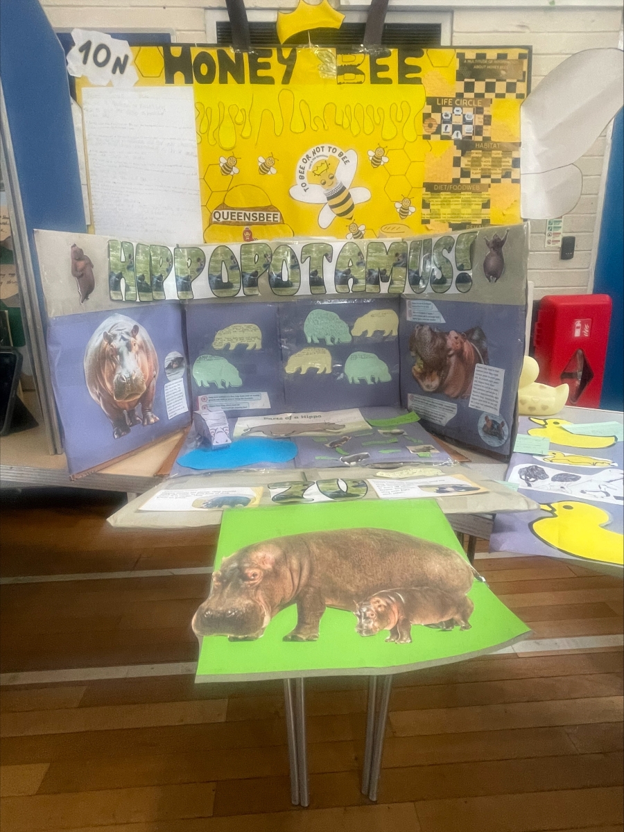 To celebrate the week, each class was assigned an animal to research. Students delved into topics such as life cycles, adaptations, diets, habitats, and unique facts about their chosen species. They then created detailed displays to showcase their findings, which they presented to the rest of the school. The senior leadership team selected the best projects from each year group, with outstanding displays on topics like frogs, sharks, bees, turtles, kangaroos, bears, and dogs.