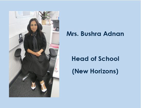 Mrs B Adnan Head of School :New Horizons (Post 16) Year 12, Year 13, Year 14 (Ages 16 – 19) | ![]() |